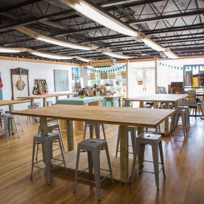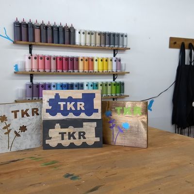 Hands-on workshop where individuals can create personalized wooden signs and other crafts. The venue offers a creative and fun atmosphere, with helpful staff who assist in design and execution.