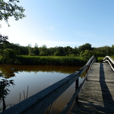 Natural haven offering peaceful walking trails through fields and wooded areas. Visitors can enjoy observing a variety of wildlife, including deer and numerous bird species, from well-maintained paths, boardwalks, and observation points.