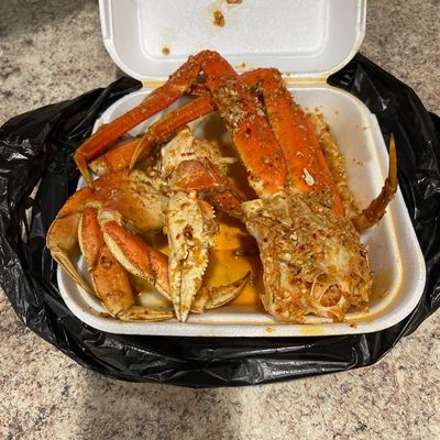 The garlic snow crabs are a standout, perfectly cooked and flavorful enough to enjoy even without extra butter. For a more intense flavor, the seafood boil is an excellent choice, and you can enhance any dish with the restaurant's signature house-made hot sauce.food_potoo