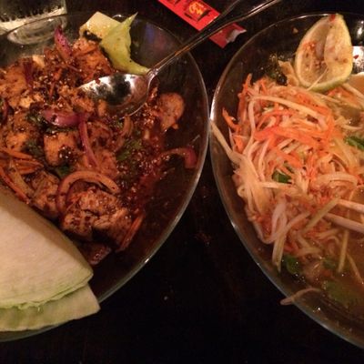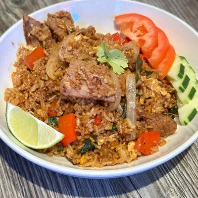 Restaurant with a pleasant atmosphere offering generous portions of flavorful Thai cuisine, including popular dishes like Pad Prik and Drunken Noodles, plus a full bar.