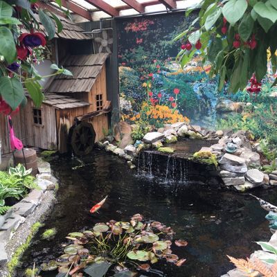 Sprawling nursery and outdoor garden destination. It features extensive greenhouses with a wide variety of plants for sale, alongside a beautifully maintained outdoor garden area.