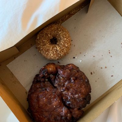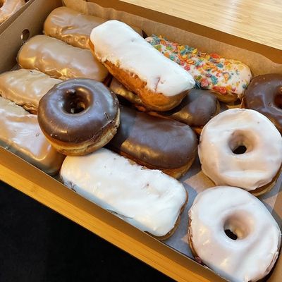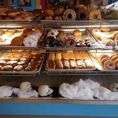 Stop for fluffy maple bars or elaborate peanut-butter-and-jelly-slathered behemoths, even with the morning bustle at this cheerfully blue donut shop.