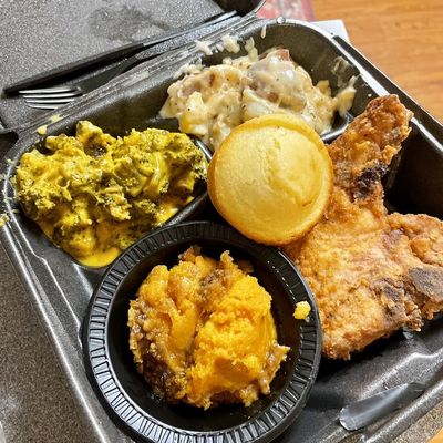 Cloverdale market offering a cafeteria-style Southern comfort food buffet with a wide meat and vegetable selection, plus wine and a deli.