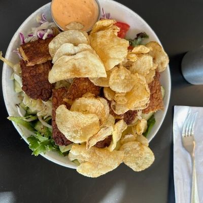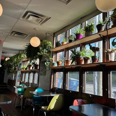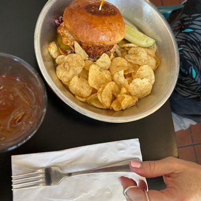 Fully vegan restaurant with a casual, plant-based menu featuring creative dishes like the Del Burger and Buffalo Cauliflower Wings, offering indoor and outdoor seating.