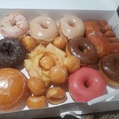 Local donut shop offering fresh, tasty donuts, including cake donuts, fritters, and eclairs, with friendly service and reasonable prices.