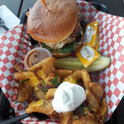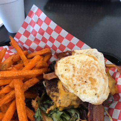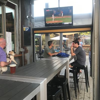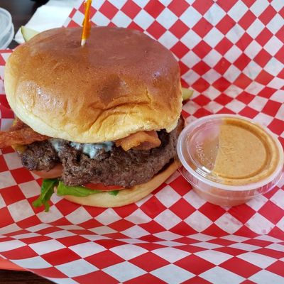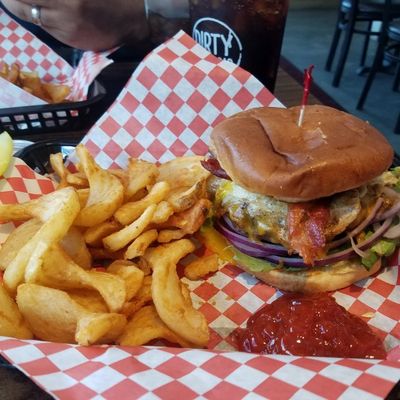 Casual burger joint with a dog-park-view patio, offering large, juicy burgers and uniquely cut fries, plus a limited indoor space.