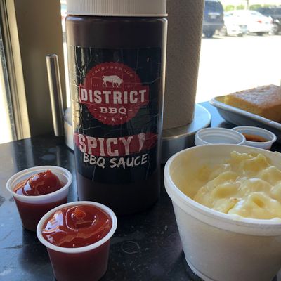 Modern chain-style barbecue restaurant offering American-style barbecue with varying reviews on meat quality and portion sizes, featuring a selection of sauces and sides.