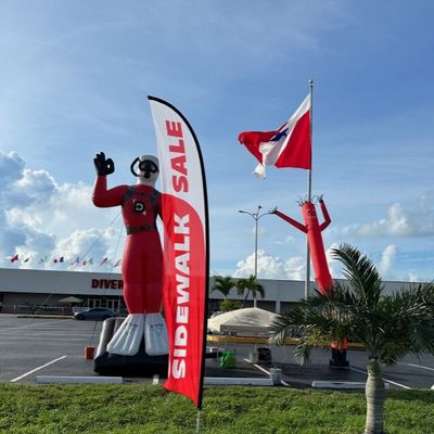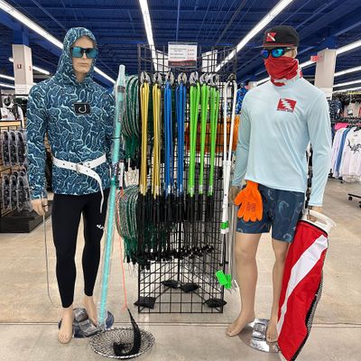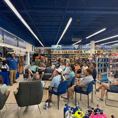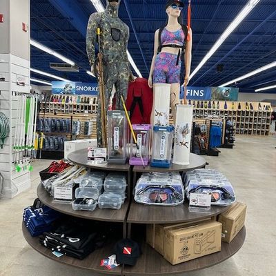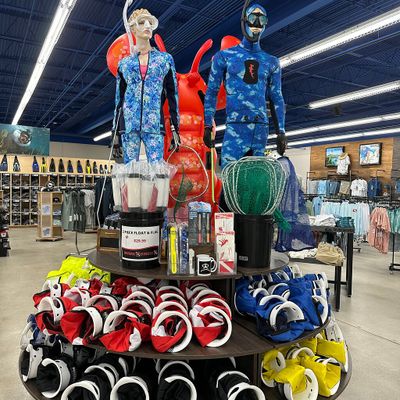 Large retail store offering a comprehensive selection of scuba diving, snorkeling, and watersports equipment. The store stocks a wide variety of items, from regulators and dive computers to clothing and souvenirs.