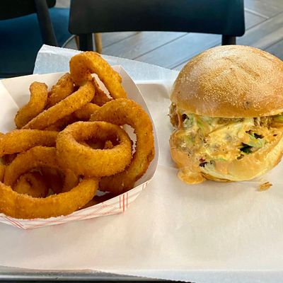 Casual barbecue restaurant offering American and kosher options, known for its tasty burgers, sandwiches, and sides.