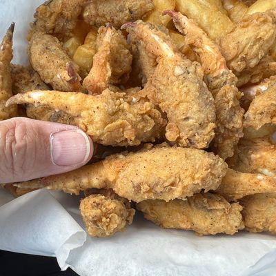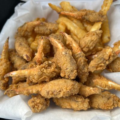 Carry-out seafood restaurant offering fresh, fried seafood with large portions at reasonable prices.