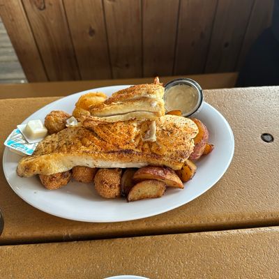 Waterfront seafood restaurant with a full bar, offering fresh catches cooked to order, plus American fare; known for its fishing charters.