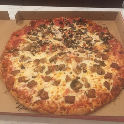Local Italian restaurant known for its large, delicious pizzas and substantial portions, offering a casual, sports-bar-like atmosphere with takeout and a full bar.