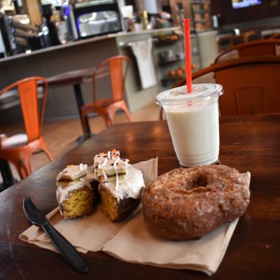 Charming shop near a train station offering creative, artisan donuts, breakfast sandwiches, and coffee; a fun, relaxing atmosphere makes it ideal for various occasions.