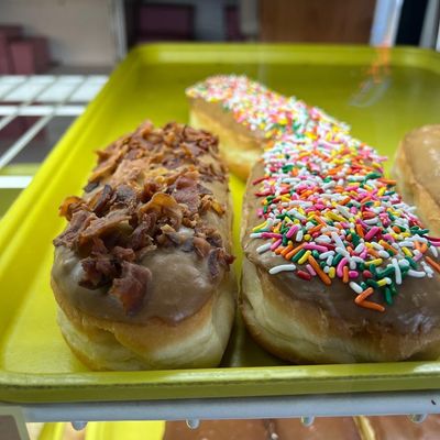 Busy, popular donut shop with a large selection of fresh donuts, breakfast sandwiches, and bagels, offering a friendly atmosphere.