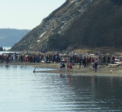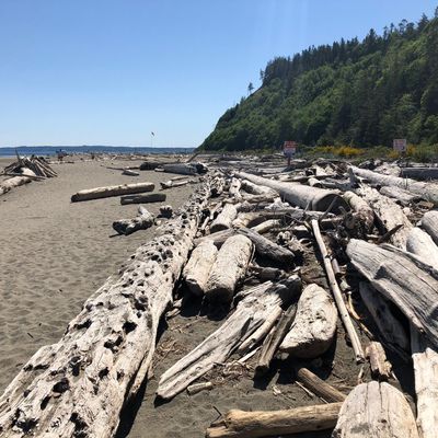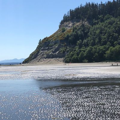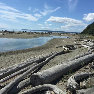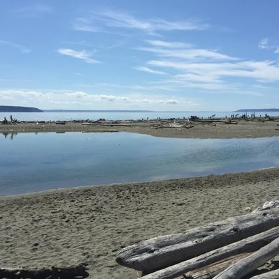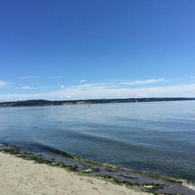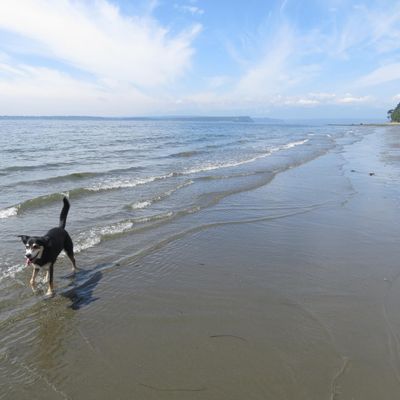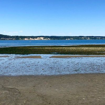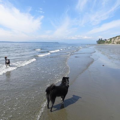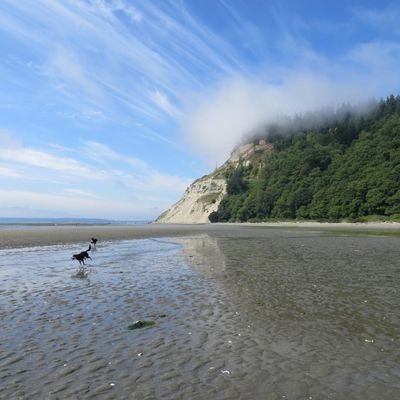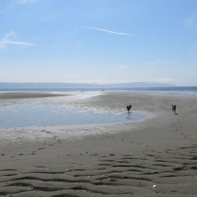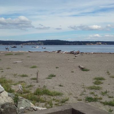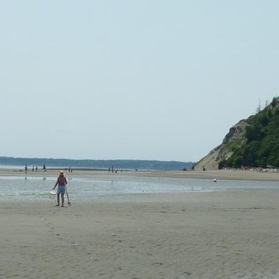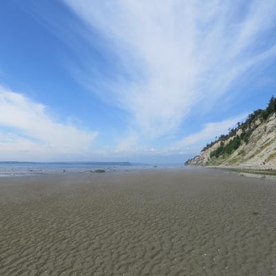 Popular sandy beach offering extensive opportunities for walking and exploration, especially during low tide. It features a designated off-leash area for dogs and provides scenic views of the surrounding landscape.