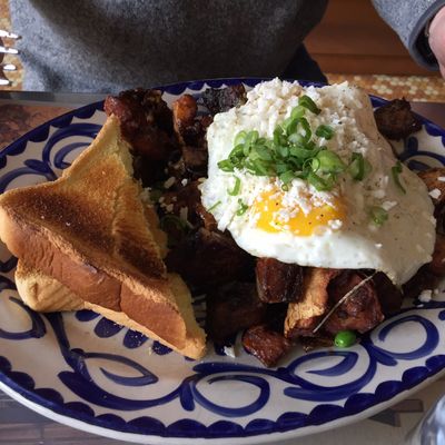 This beloved "Mex Tex" all-day diner leans in on Southern-inspired Mexican food, with specialties like brisket tacos and masa pancakes with mole-infused maple syrup.