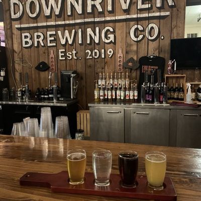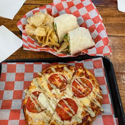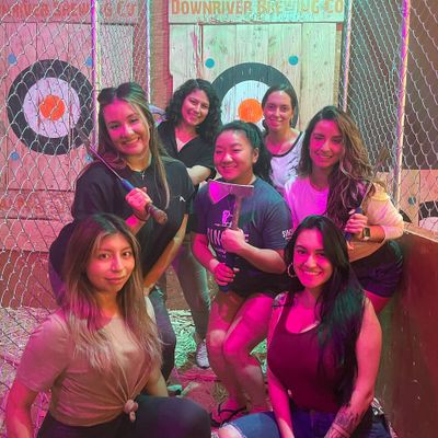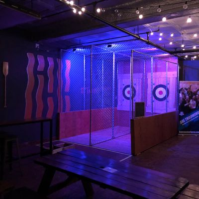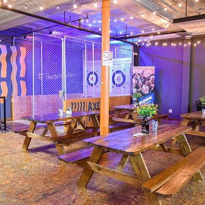 Brewpub with a full bar, offering pizza and Mexican-inspired bar food, axe throwing, and live music in a spacious downtown setting.