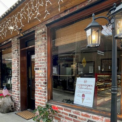 Small, non-chain shop offering chocolates, ice cream, and other treats in a charming alleyway setting.