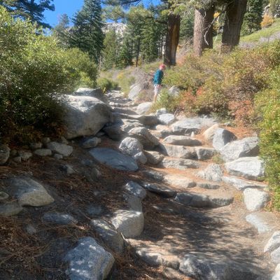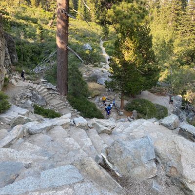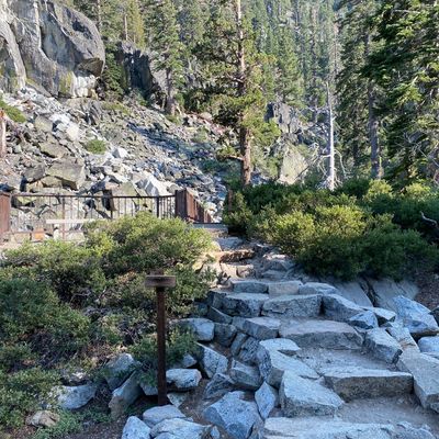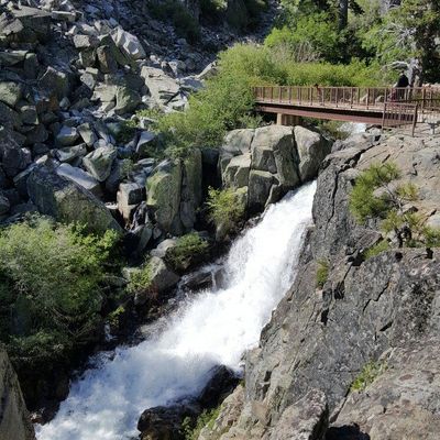 Eagle Falls offers a breathtaking natural spectacle with a moderately challenging trail leading to a picturesque waterfall. The path features steep rock stairs and varied terrain, providing stunning views of the surrounding mountains and Emerald Bay.