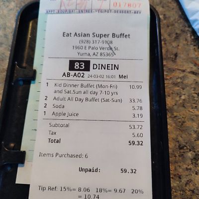 Large, Asian buffet with Chinese, sushi, and Mongolian BBQ options, offering a wide variety of dishes and generally good service. long_description