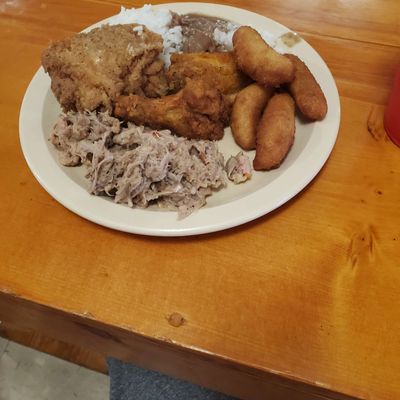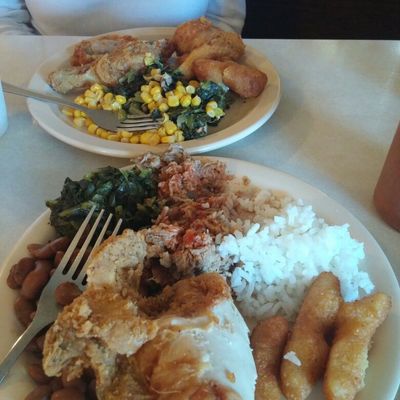 Casual American restaurant with a home-style buffet featuring fried chicken, BBQ, and seafood, known for its friendly service and delicious country cooking.
