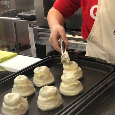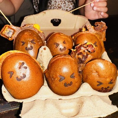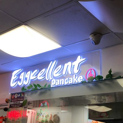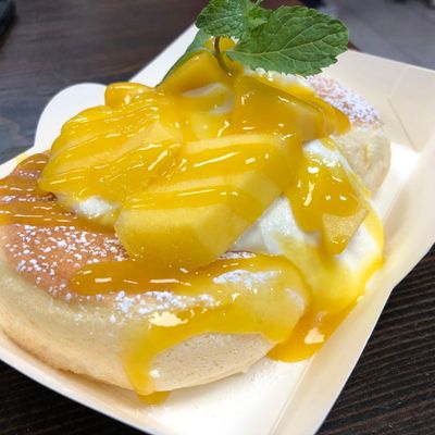 Dessert restaurant specializing in fluffy Japanese souffle pancakes with various flavors, located near other popular Asian eateries.