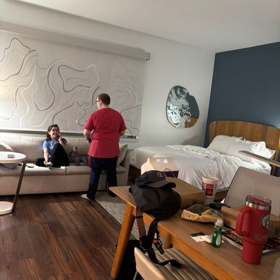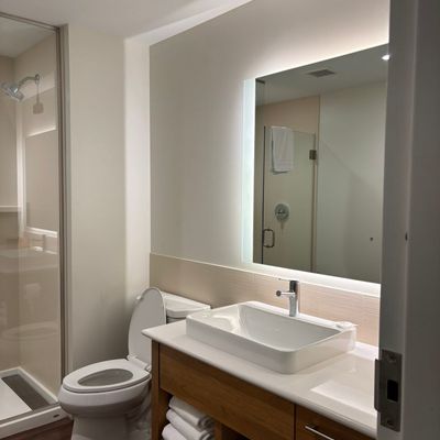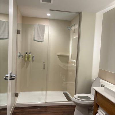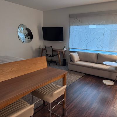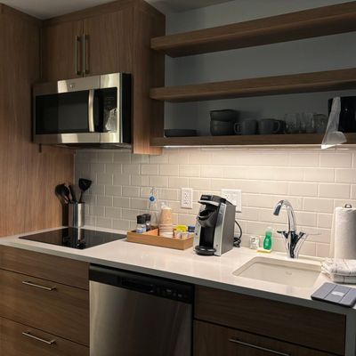 Modern and clean hotel offering spacious rooms with kitchenettes and comfortable beds. Guests can enjoy a complimentary breakfast with made-to-order options and a full bar.