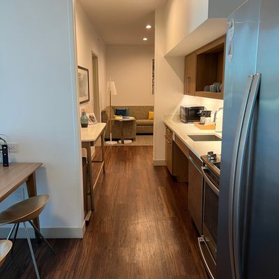 Modern hotel offering a blend of comfort and class. It features well-designed rooms with kitchenettes, a complimentary healthy breakfast with cook-to-order options, and amenities like loaner bicycles, a gym, and a pool.