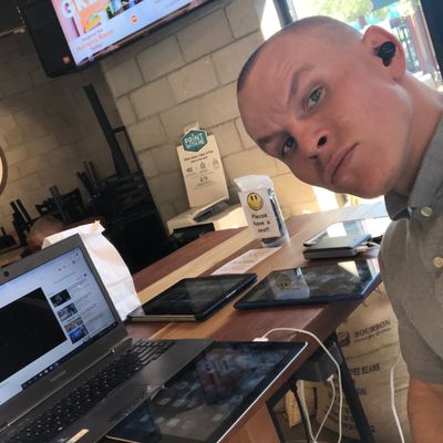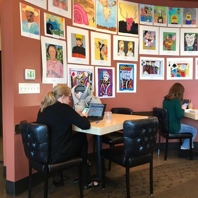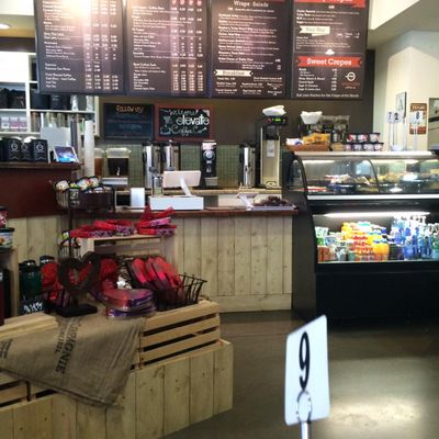 Bustling cafe with American fare, including crepes and coffee, offering a comfortable atmosphere for work, socializing, or enjoying live music.