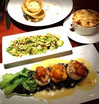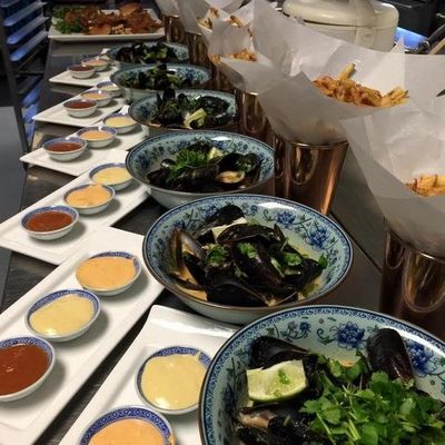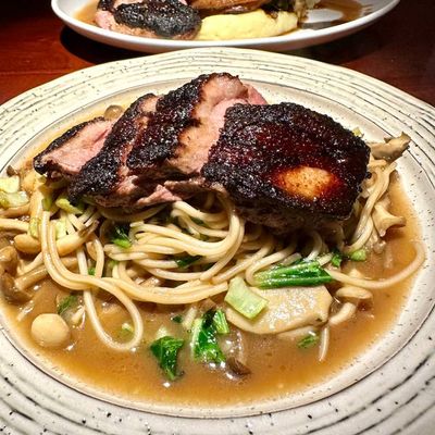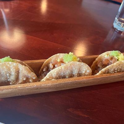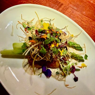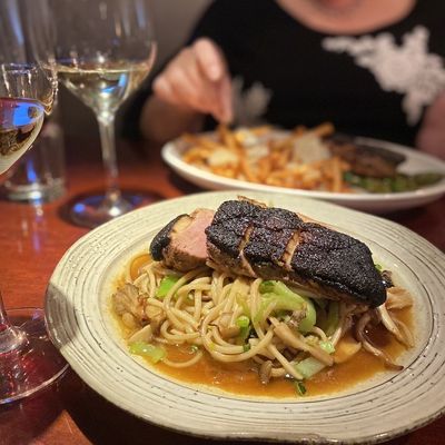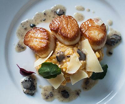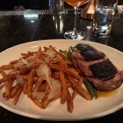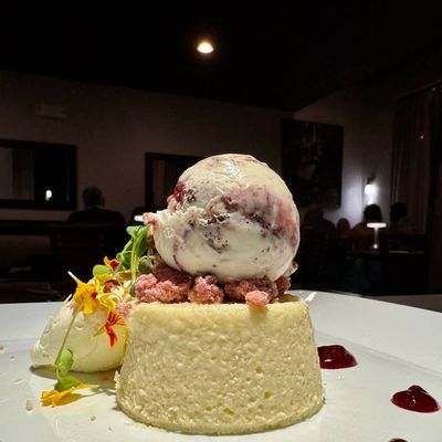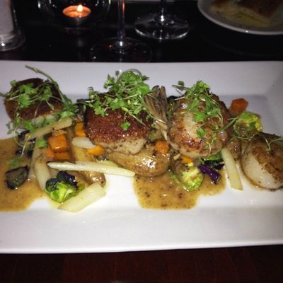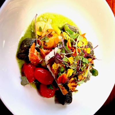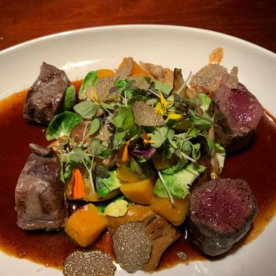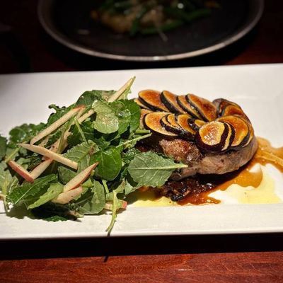 High-end restaurant with French and American cuisine, offering inventive dishes and a sophisticated atmosphere in a setting with both indoor and outdoor seating.