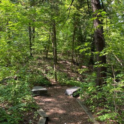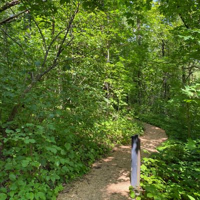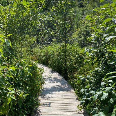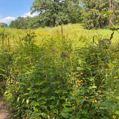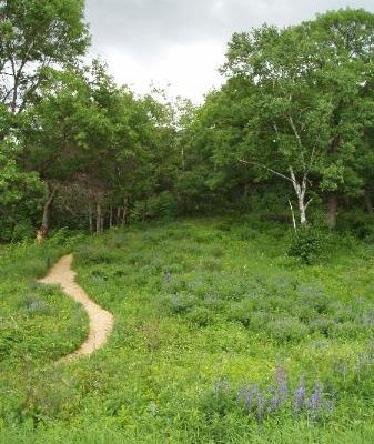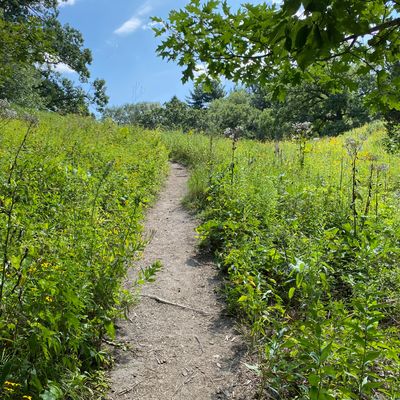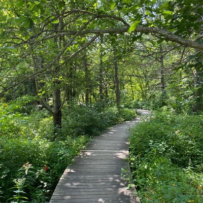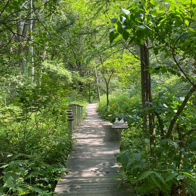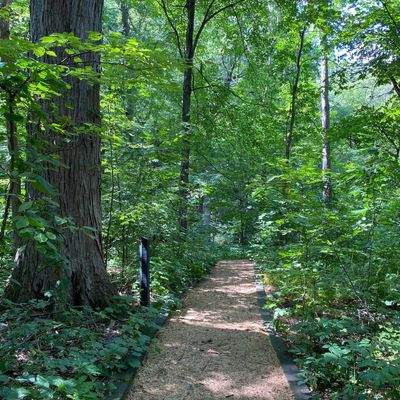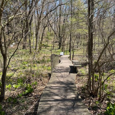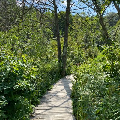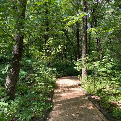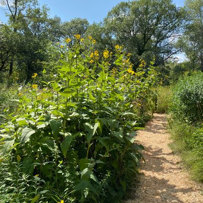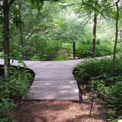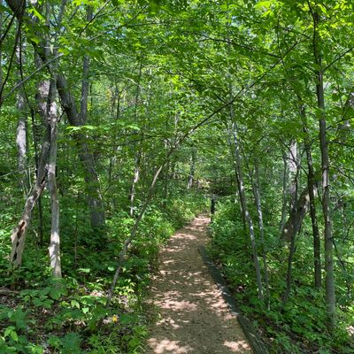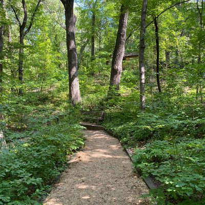 Serene outdoor space dedicated to showcasing native plants in their natural habitats. Visitors can explore winding, wood-chipped trails through diverse settings like prairies and woodlands, observing a wide variety of flora and fauna. long_description
