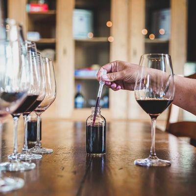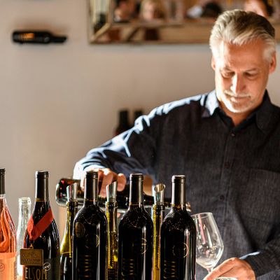 Wine tasting room offering a diverse selection of wines, including unique rosé options. Visitors can enjoy knowledgeable guidance from staff and sample various wines, often paired with local dark chocolate.