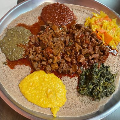 Highly-rated Ethiopian restaurant in a suburban shopping center, offering flavorful, authentic dishes and friendly service with vegetarian options; takeout available.