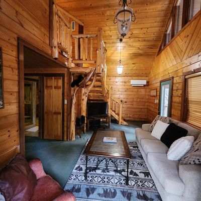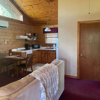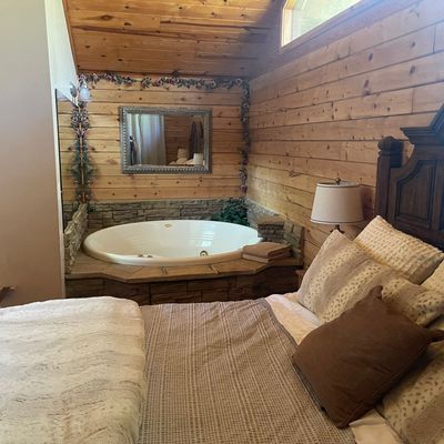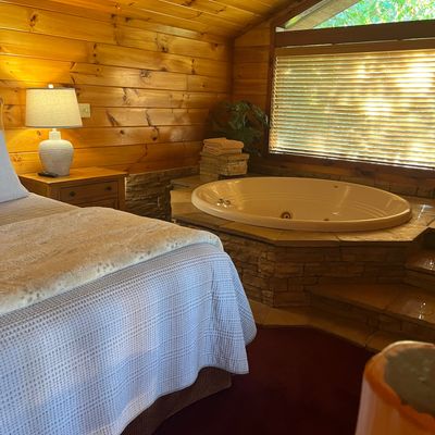 Enchanted Forest Resort offers secluded cabins nestled within a peaceful wooded setting. These accommodations provide a cozy and private escape, featuring amenities like hot tubs and full kitchens.
