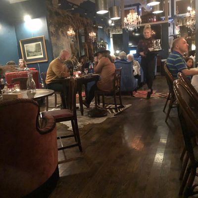 Cozy downtown wine bar and restaurant with a British theme.