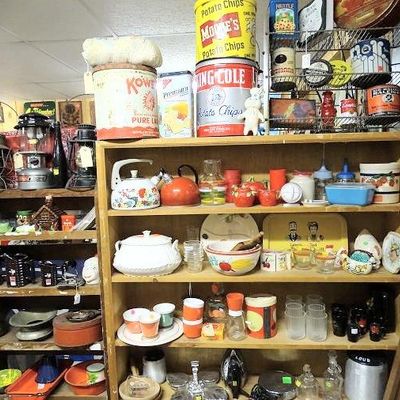 Large shop featuring items from 20 vendors. The store offers a wide variety of household knickknacks, collectibles, vintage clothing, and some furniture.