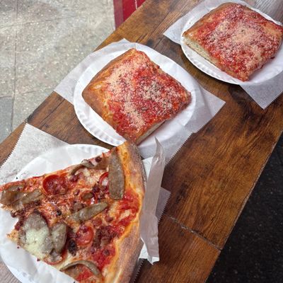 Fast-food style pizzeria in Hell's Kitchen offering large, affordable New York-style slices and whole pies, with consistently good but not outstanding quality.