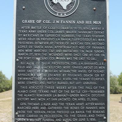 Historical site commemorating the execution of Colonel James Fannin and his men during the Texas Revolution. The monument serves as a solemn reminder of the sacrifices made for Texas independence.