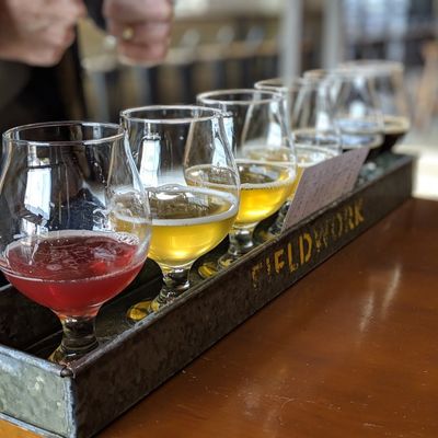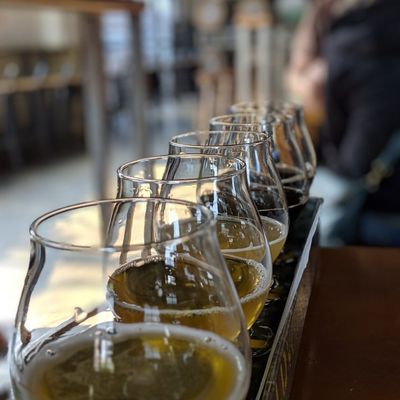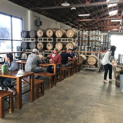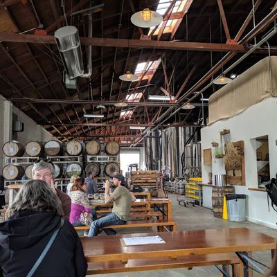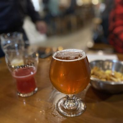 NorCal brewery with a large selection of beers, Detroit-style pizza, and a dog-friendly atmosphere in a converted warehouse.