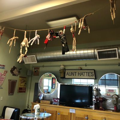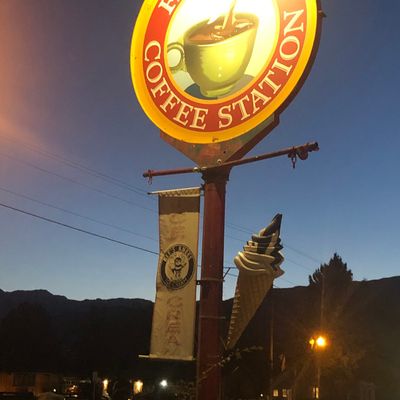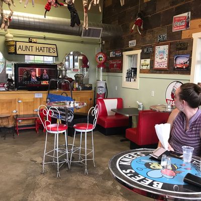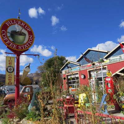 Quirky cafe in Midway with eclectic decor, serving American breakfast, lunch, and baked goods, plus coffee, ice cream, and sodas.