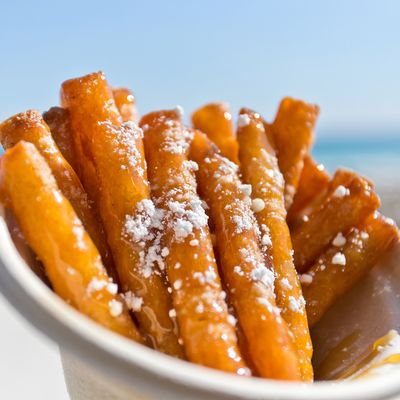 The menu features fresh coastal fare like the perfectly fried grouper fingers. You can also enjoy classic snacks like chips and dip alongside your meal.food_potoo