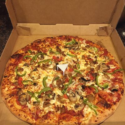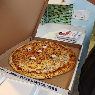 Late-night delivery pizza joint known for its large, cheesy pies, garlic knots, and surprisingly good cinnamon rolls; some negative reviews mention inconsistent quality and service.