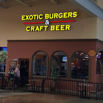 Mall-based American bar and restaurant with creative burgers, exotic meats, and a wide craft beer selection.