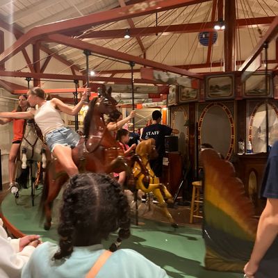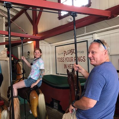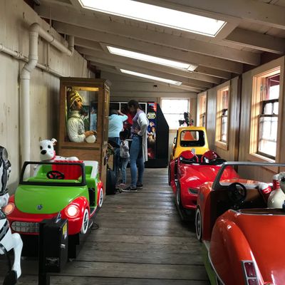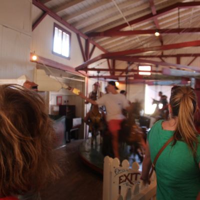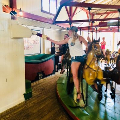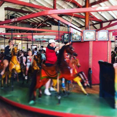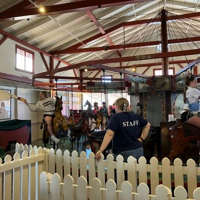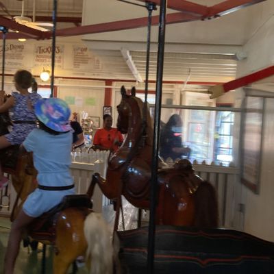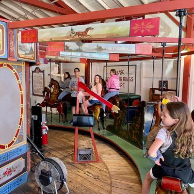 Visitors enjoy the unique experience of the ring-grab game and the nostalgic charm of the historic carousel. The venue also features an arcade and a photo booth for added entertainment.reviews_potoo