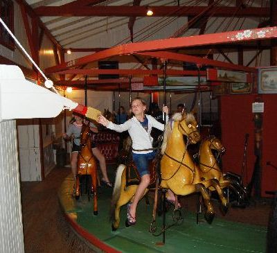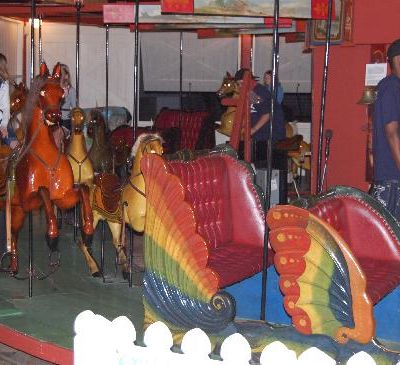 The atmosphere is nostalgic and enchanting, centered around the rhythmic motion of the vintage rides. A sense of old-fashioned charm fills the air, especially when patrons participate in the traditional brass ring game.ambiance_potoo