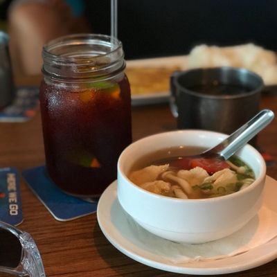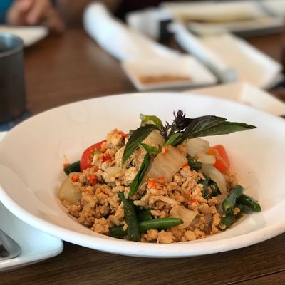 The menu features a variety of traditional Thai offerings and a selection of drinks, including orange wine. The dishes are crafted using authentic techniques to maintain traditional flavors.food_potoo