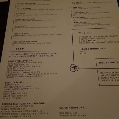 Southtown Irish pub with a modern vibe, offering elevated pub fare including pizza and cocktails, known for its friendly service and extensive whiskey selection.