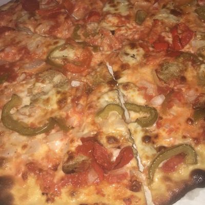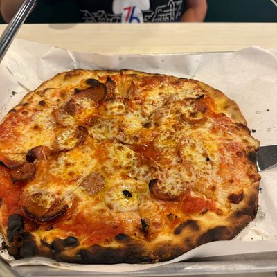 Reviewers highlight the coal-fired crust that is 'burnt just enough' and recommend the house salad. The service is noted for being quick and friendly.reviews_potoo