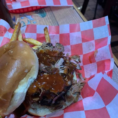 Casual neighborhood BBQ joint with a full bar, known for its smoked meats and sides.