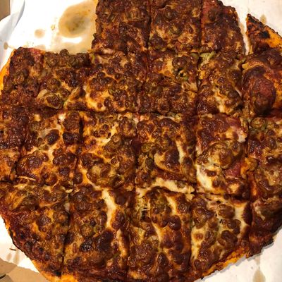 Long-standing, family-friendly pizza restaurant with a full bar, offering a varied menu including unique toppings and wings; location slightly outside the main area.